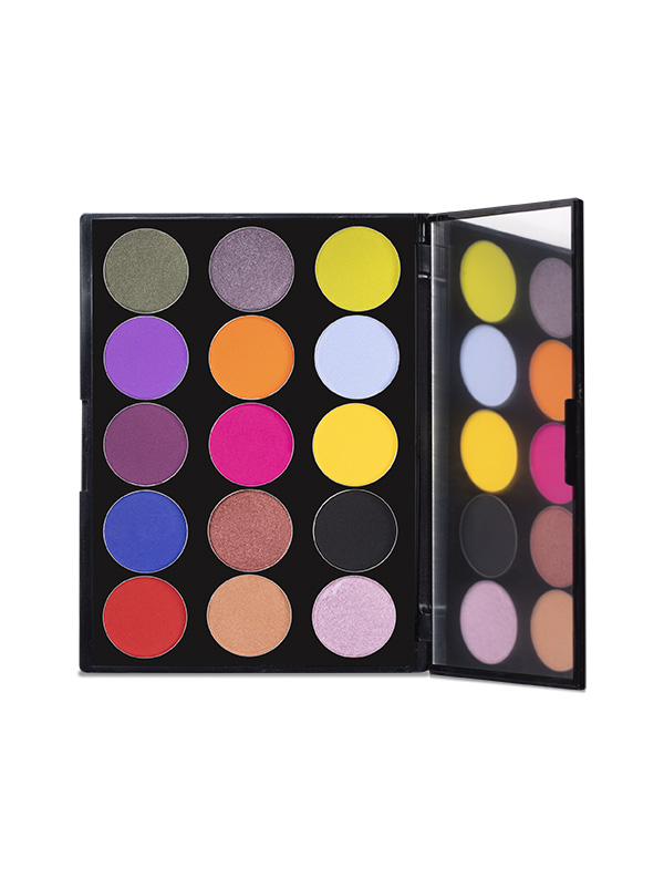 Paletas de sombras artística y profesional con 15 tonos de alto rendimiento, contenido de pigmentos en tamaño de lujo, una presentación fabulosa con un espejo de gran formato en su interior.