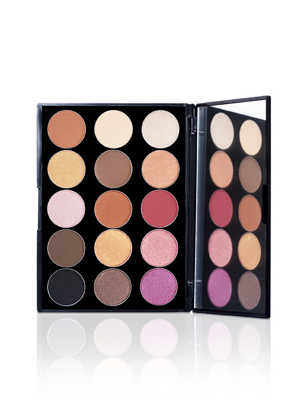 Paletas de sombras artística y profesional con 15 tonos de alto rendimiento, contenido de pigmentos en tamaño de lujo, una presentación fabulosa con un espejo de gran formato en su interior.